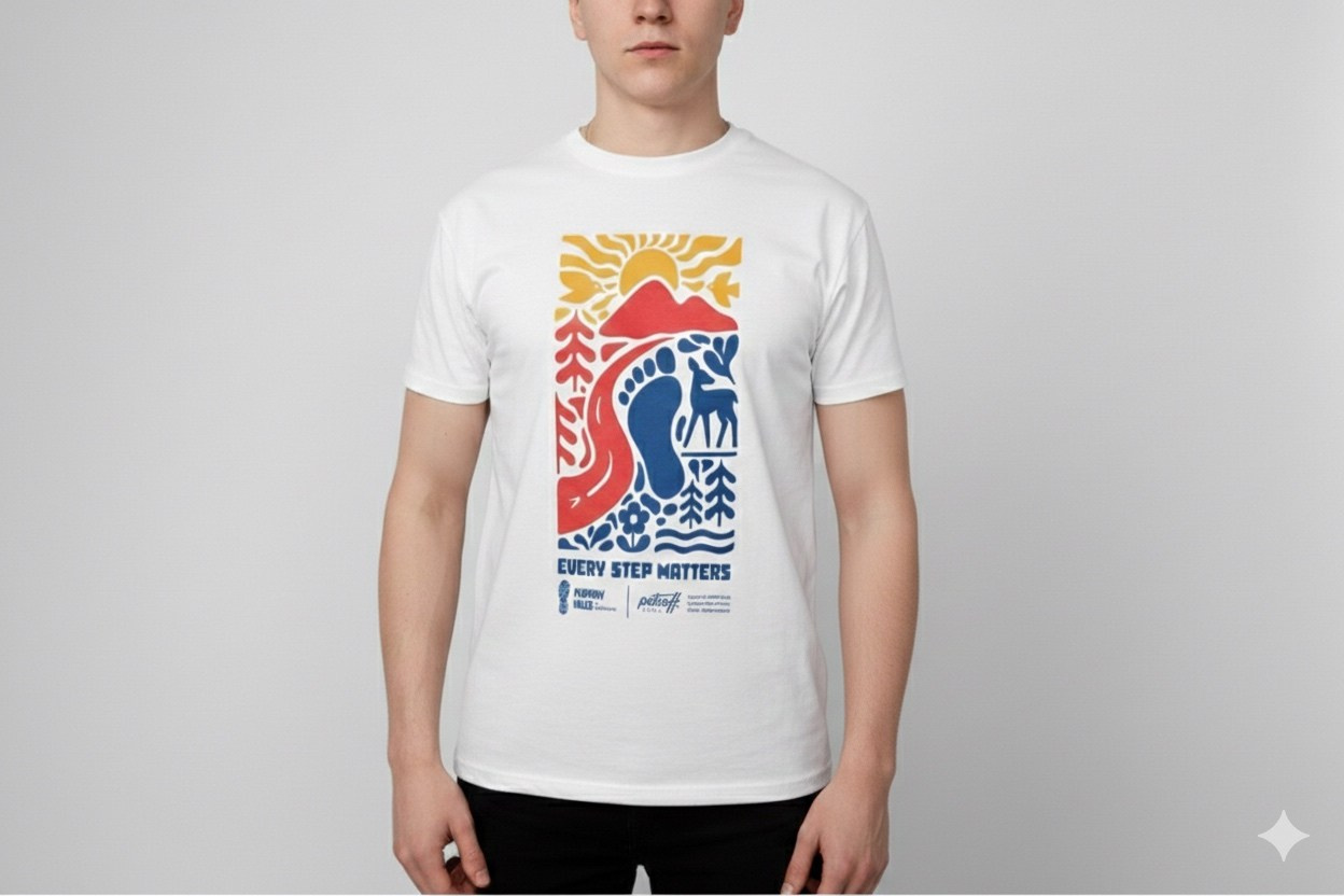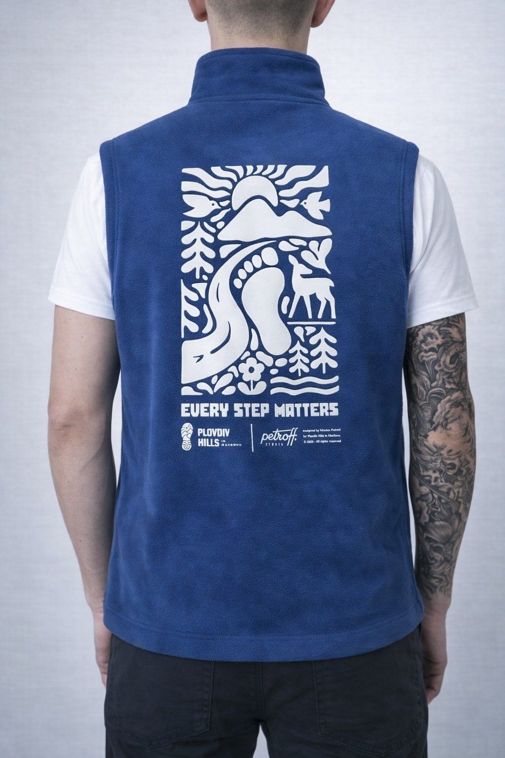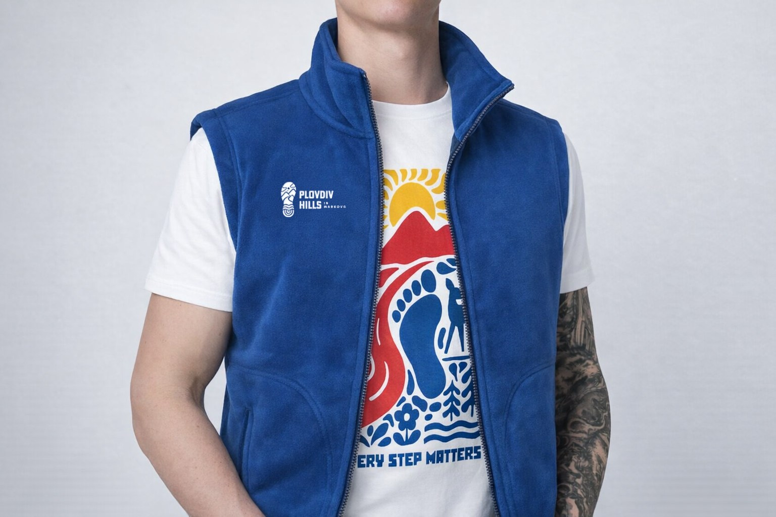 Графичните линии символизират извивките на пътеките, по които бягаш, червеният връх — предизвикателството пред теб, а синьото — свободата на небето над планините. Всяка стъпка те води нагоре, защото “Every Step Matters”!